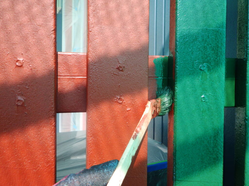宇都宮市の外壁塗装・シーリング工事で玄関ポーチの塗装を行い、完工しました。中塗り塗装で、刷毛でローラーの入りきらない細かい箇所を塗装し、ローラーで平面を塗装しました。弱溶剤形シリコン樹脂塗料を使用しているので、 ...続きを読む2024/02/19 富山市の皆様へ!金属屋根修理について