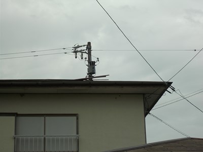 こんにちは、街の屋根やさん堺店です。今回は堺市北区でアンテナが転倒し建物全体の点検を行った様子をご紹介します。屋根馬と呼ばれるアンテナを支える支柱や支線(アンテナを固定するワイヤー)の経年劣化が原因で、アンテナが転倒していました。アンテナが転倒すれば屋根の損傷や、アンテナの落下で大きな事故を招く事もあります。 ...続きを読む2024/02/19 堺市南区にて不要になったパラボラアンテナを撤去|アンテナの撤去や復旧工事なども当店にお任せください!