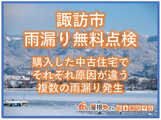更新日 2024.2.16 桑名市の皆さまこんにちは!街の屋根やさん四日市店です。今回は庇(ひさし・霧除け)について、役割や補修方法をお伝えしたいと思います。桑名市の皆さまも雨漏りしないお家で、少しでも安心して快適な暮らしを過ごす事を望みます。何か疑問やご ...続きを読む2024/02/16 諏訪市雨漏り無料点検|中古住宅購入後雨漏り発生しかも何か所も・・・
