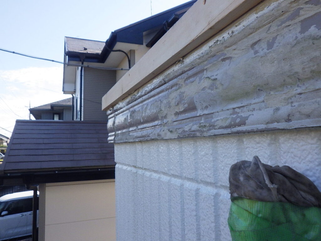 宇都宮市の笠木交換工事で幕板塗装をしました 施工前の幕板の状態です 幕板の既存塗装塗膜が傷んで浮いている状態で 皮すきとマジックロンでケレン終了しました 幕板塗装用の養生をしました 外壁面は塗装しませんのでガムテープを使い 塗料が食み出ること ...続きを読む