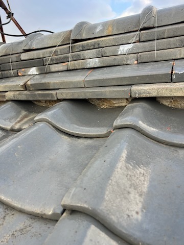 木造2階建て平板瓦葺きのお住まいで、隣のお宅の塗装工事業者の方が棟瓦のズレを教えてくれたそうです。地上からですと肉眼では確認出来ませんが、近くで見ると確かにズレていて、強風などにより外れてしまう危険性がありました。 屋根に上がって確認します ...続きを読む2024/01/18 豊橋市西高師町にてモニエル瓦のケラバ瓦が落下、下地の破風板も腐っていました