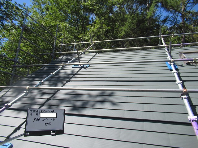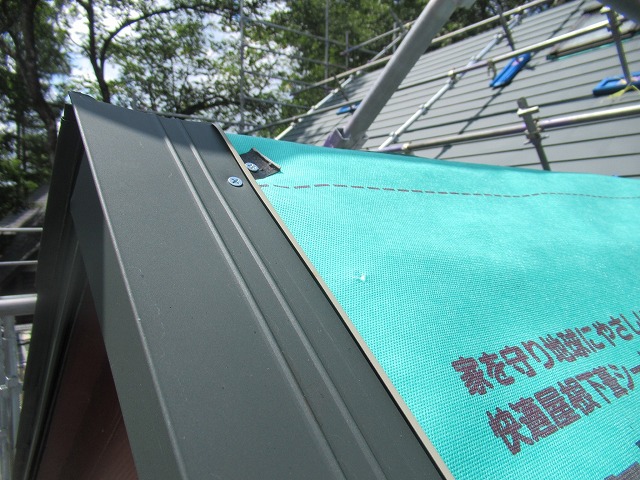 カラーベスト屋根からの雨漏りでお困りだったお客様。部分的な葺き替えも終わり、棟板金を新しく取り付けました。 雨漏りしていた隅棟部分 隅 ...続きを読む2024/01/16 名古屋市港区で波型スレート屋根のカバー工法、ガルバリウム鋼板屋根の本体施工
