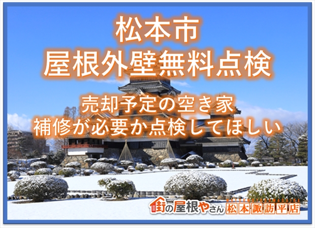 更新日 2024.1.15 四日市市の皆さんこんにちは、街の屋根やさん四日市店で御座います。 屋根修理と一言でいっても様々な屋根修理があります。四日市市の皆さまの屋根修理に関するお悩み事や不安、価格は?といった疑問を解決したく四日市の皆さま方に私達が施工した様々な屋根修理 ...続きを読む2024/01/15 松本市無料点検|売却予定の空き家|補修が必要か点検してほしいというご依頼