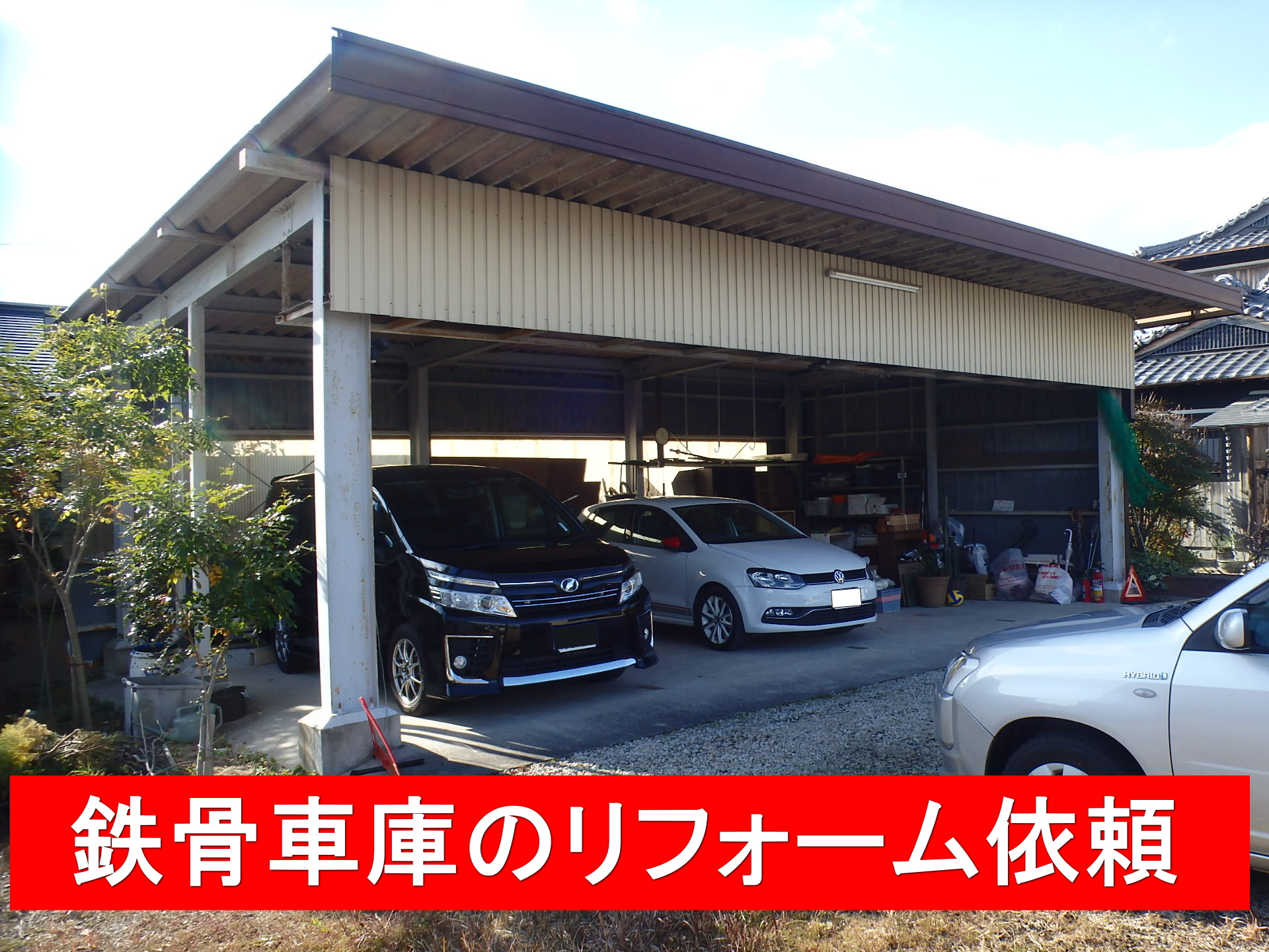 2024/01/12  四日市の鉄骨車庫リフォーム依頼!トタン波板張替えと錆びた折板屋根の塗装