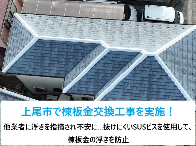 2024/01/12  上尾市で棟板金交換工事を実施!業者に浮きを指摘され不安に…抜けにくいSUSビスを使用して棟板金の浮きを防止