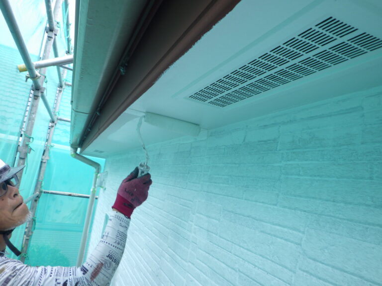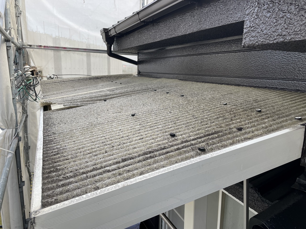 宇都宮市の窯業系サイディング塗装工事で下塗り塗装をしました。 軒天の2回目ローラー塗装中です。 破風板の見返し側と外壁との取り合いを刷毛で塗装してから、刷毛塗装に重ねるようにローラーを転がし塗装していきます。 仕上げ塗装ですので、ローラー目や塗料だまりが出来な仕様に塗装しました。 ...続きを読む2023/12/16 枚方市 3階建てのベランダ波板の張替を塗装工事のついでに行いました。