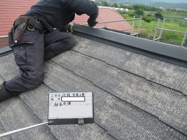 施工前 既存の劣化していた波板の写真になります。留め具のフックはプラスチック製で劣化しており、外れていたり割れている状態でした。波板もFRP製のもので、少し浮いているのがわかります。 波板の張替工事 ...続きを読む2023/12/16 笛吹市で塗装前に棟板金の交換工事を行う屋根の補修工事のご紹介(既存棟板金撤去・貫板設置編)