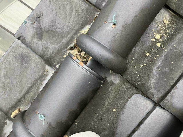 木更津市吾妻にお住いのお客様に「屋根先の木が傷んでしまっているので、見てもらいたい」と、お問い合わせをいただき屋根調査にお伺いさせていただきました! 木部の傷みは、状況によってお住いに甚大な影響を与える場合がありますので、早期修理が必要です。 屋根先の状態確認です。傷んでしまっている木部 ...続きを読む2023/12/18 長久手市にて瓦屋根の紐積みなおし工事・紐丸と呼ばれる瓦がズレており飛散や雨漏り被害が想定される状態
