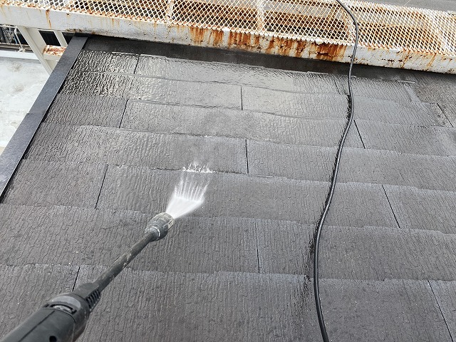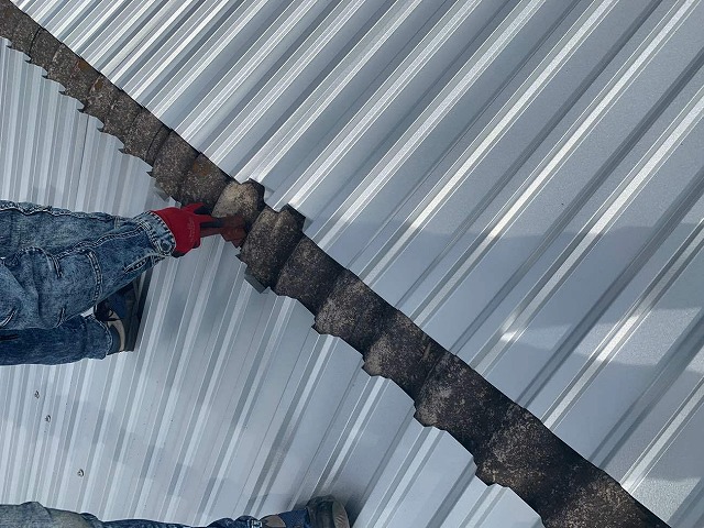 新潟市秋葉区にお住まいの方より、一部分の雨樋が外れて飛散した箇所があるので修繕したいとご相談を頂きました。早速、飛散した雨樋を確認するために現地調査を行いました。街の屋根やさん新潟店では現地調査・見積は無料で行っております。街の屋根やさんの無料点検でお住まい全体の不安も解消!までお問い合わせください! ...続きを読む2023/12/14 大阪市 経年劣化したカラーベスト屋根を塗装以外の方法で美観修繕をしています。