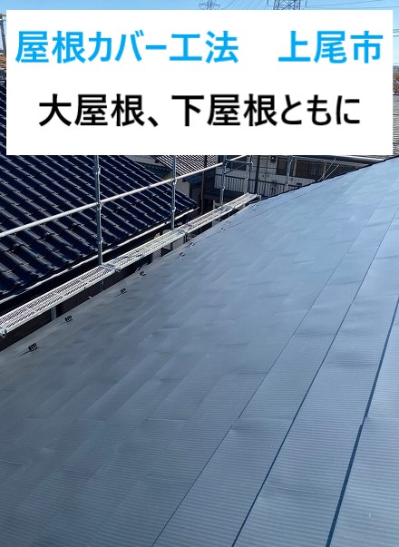 こんにちは、街の屋根やさん堺店です。本日は、堺市堺区の連棟住宅で玄関先のポリカ波板張り替え工事を行なった様子をご紹介します。連棟住宅の続き2軒を所有されており、2軒共工事のご依頼をいただきました。今回は台風被害を受けて破損していたポリカ波板を全て撤去して、新しい波板に全面張り替えを行いました。台風シーズンは過 ...続きを読む2023/12/14 屋根カバー工法を上尾市で実施!大屋根、下屋根ともにメンテナンス