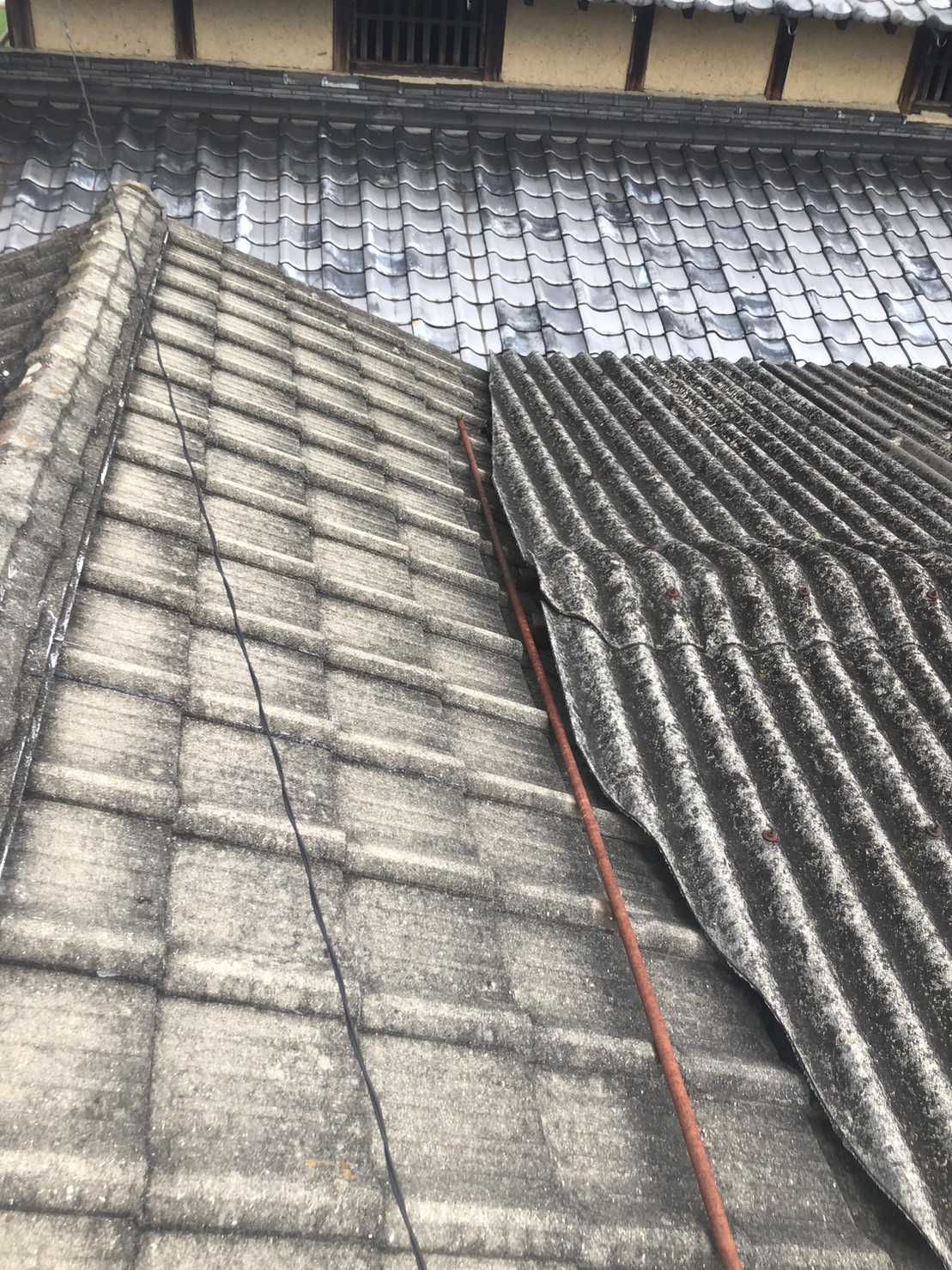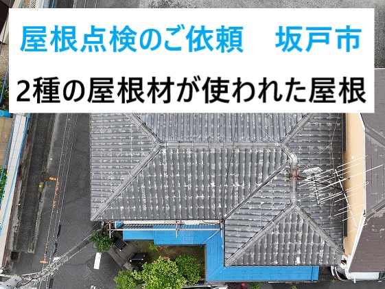 茨城県の皆様こんにちは、街の屋根やさん水戸店です。東海村にお住いのお客様より、穴があいてしまった物置の波トタン屋根(なまこ板)についてご相談をいただきました。張り替えをご検討中で、その際に雨樋も一緒に交換したいとのご希望です。早速現地におもむき、見積りを兼ねた調査を行いました٩(ˊᗜˋ*)و* ...続きを読む2023/12/13 屋根点検のご依頼 坂戸市で2種類の屋根材が使われた屋根を無料調査