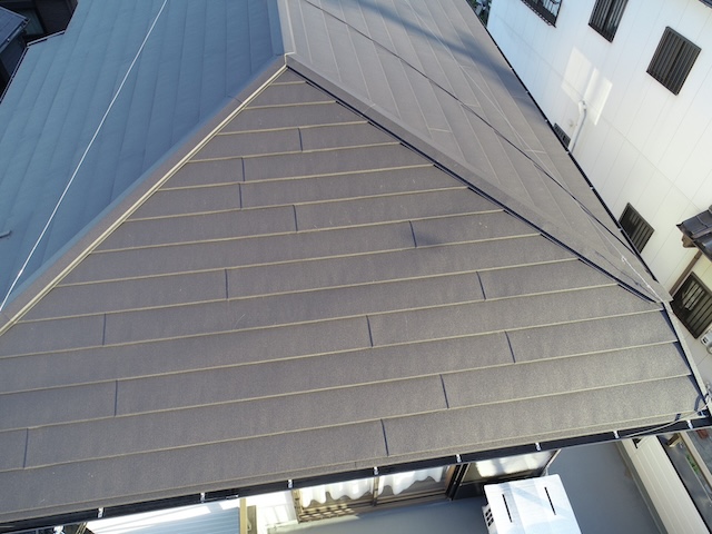 以前スレート屋根に葺き替えた大屋根の、棟板金が経年劣化で捲れ隙間が出来ており雨水が侵入し易い状況が発生しています。取り急ぎ、シーリングを充填しました。 ...続きを読む2023/12/17 豊橋市西高師町 モニエル瓦の葺き替え工事、玄関庇もルーガに!