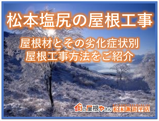 お電話にてお問合せ頂きました豊橋市天伯町のお客様。築50年の和瓦葺き平屋で、屋根を新しくしたいとの事。アスファルトシングル葺きを検討しているので見積りをして欲しいとのご依頼でした。~葺き替えに関してはコチラもご覧ください~ 敷地内はとても手入れが行き届いて ...続きを読む2023/12/2 松本塩尻の屋根工事|屋根材とその劣化症状別屋根工事方法をご紹介