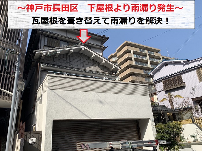 2023/11/29 神戸市長田区 雨漏りしている下屋根の瓦屋根を葺き替えて解決!