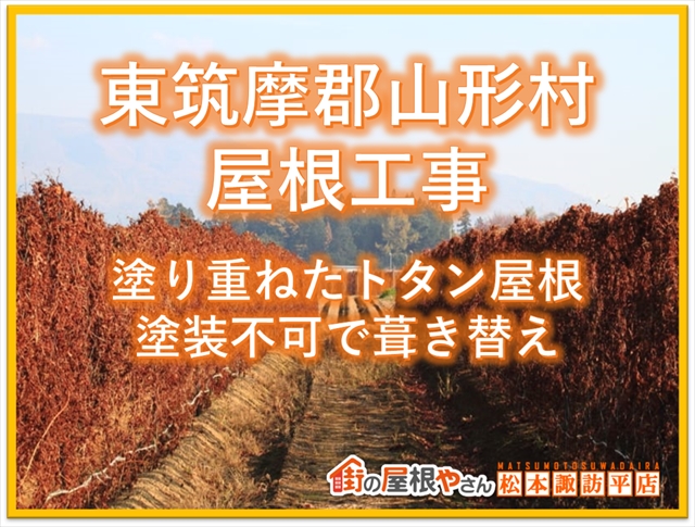 東筑摩郡山形村から屋根の塗り替えのご依頼があり現地調査に行ってきたのですが、ご主人が過去に5~6回はご自分で塗ったということで、塗膜がだいぶ厚くなっていて、だいぶ剥がれていました。この状態では塗り替えでのメンテナンスは不可能です。ガルバリウム鋼板のカバー工法で工事をすることになりました。街の屋 ...続きを読む2023/11/27 上伊那郡辰野町屋根塗り替え|サビからの雨漏り|トタン屋根を補修して塗装