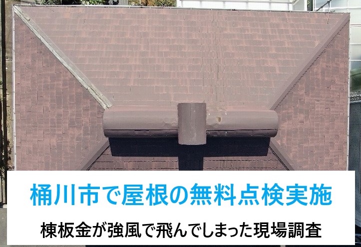 豊橋市天伯町にてカラーベスト屋根に違和感を発見したお客様。お散歩中にふとご自身の住まいを見たところ、道路から唯一見える東面の屋根に破損しているような違和感を感じ、お電話にてご相談くださいました。「強風などでモノが飛んできて破損したのかも」と伺ったので、許可を頂き屋根に上がり調査させて頂きました。建築図面も見せ ...続きを読む2023/11/13 桶川市で屋根の無料点検を実施!!棟板金が強風で飛んでしまった…現状確認