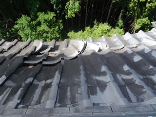 こんにちは、「街の屋根やさん西条・新居浜店」店長の丹 基徳(たん もとのり)です。久万高原町にお住いのお客様から「台風の強風で屋根の瓦がズレたから瓦修理してほしい。」とのお問い合わせの電話をいただきました。さっそく現地に急行して被害の状態を屋根調査します。木造2階建て住宅で屋根にはグレー色の釉 ...続きを読む2023/11/20 三重県の宗教施設にて台風被害による瓦の破損