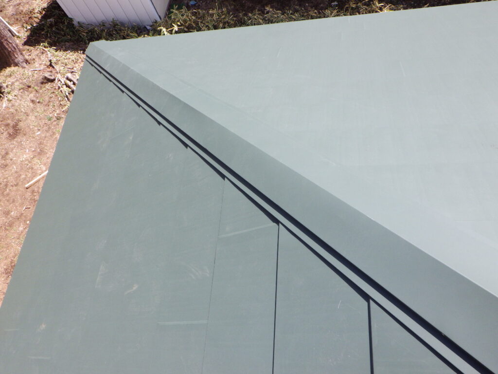 那須町の屋根カバー工事で横暖ルーフの重ね葺きが完工しました。 下屋根の棟板金を取り付けました。 棟板金の軒先側を剣先に加工してから、板金下地にスクリュー釘で固定し、外壁側を加工した板金と繋ぎました。 外壁側の棟 ...続きを読む2023/10/25 堺市南区にてインナーガレージの天井から雨漏り|バルコニーの立ち上がり部分から雨水が侵入