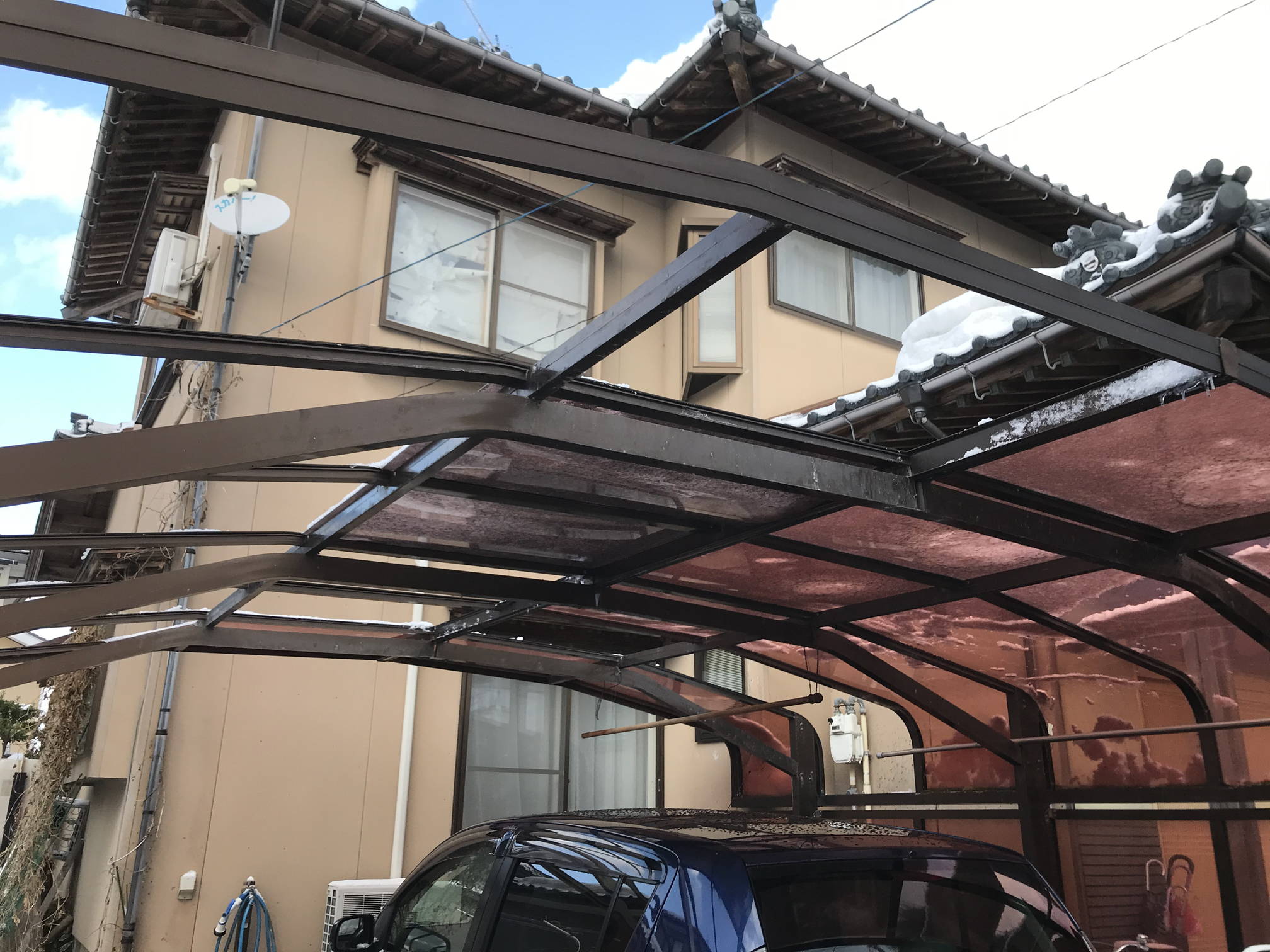 新潟市南区にお住まいの方より、瓦屋根から板金屋根に葺き替える工事を行っております。前回の記事までで棟施工や軒先板金施工についてご説明しましたので、今回の記事では板金葺きまでをご紹介します!【以前までの記事】●新潟市南区にて瓦屋根大屋根・下屋の葺き替え工事を着手しました●新潟市南区にて瓦屋根葺き替え工事の下地造 ...続きを読む2023/10/21 新潟市秋葉区にてカーポートポリカ屋根の応急処置を行いました