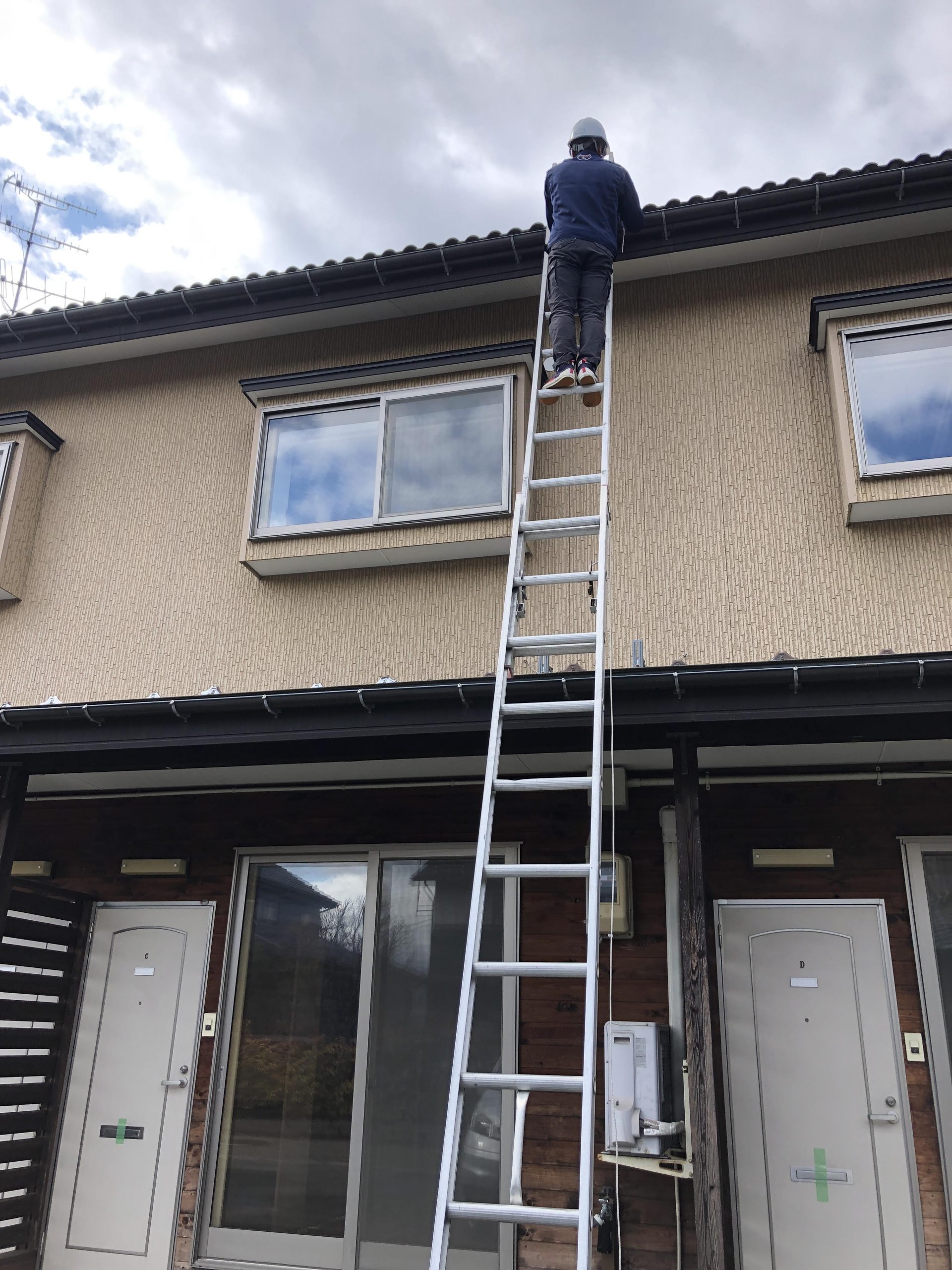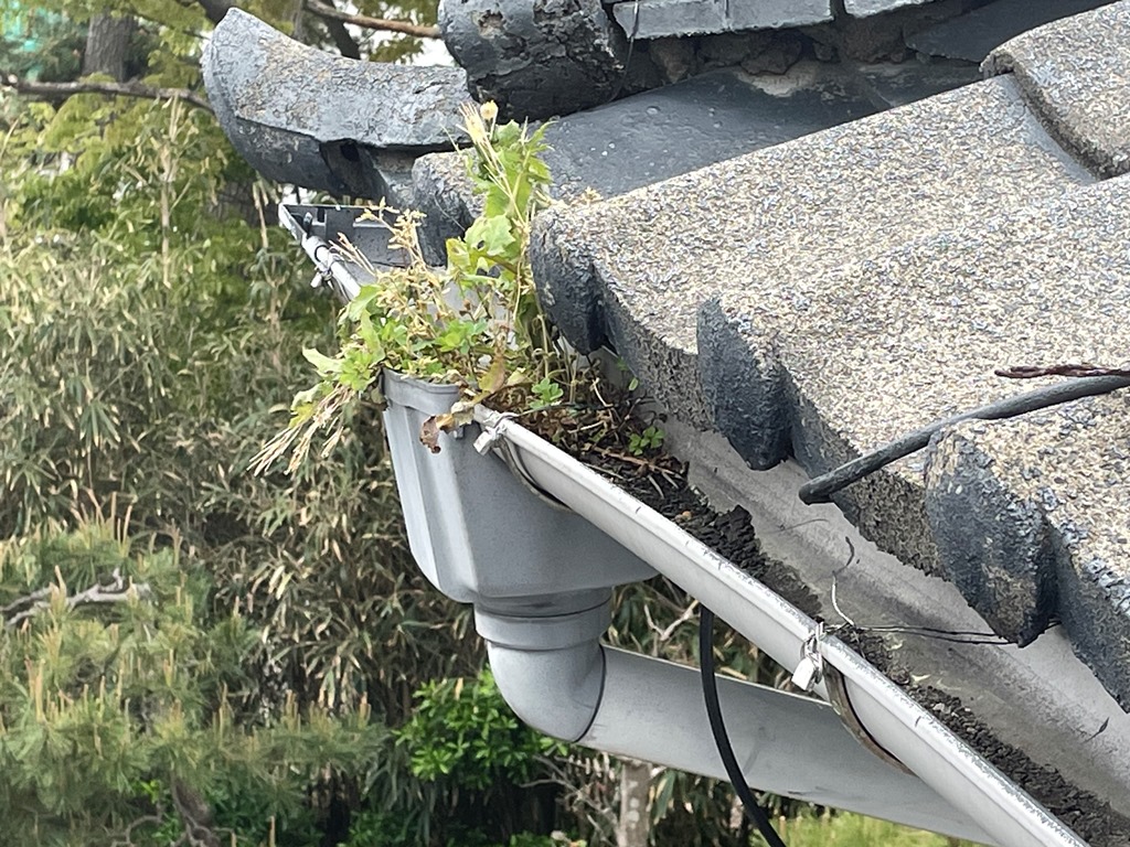 岐阜市でおこなった瓦屋根の調査に伺いました。「近くで工事をしているという業者に屋根の漆喰が剥がれていると指摘を受けたので点検してほしい」と、お問い合わせをいただき調査にお伺い致しました。 お問い合わせのきっかけになった棟の漆喰が剥がれている様 ...続きを読む2023/10/22 いわき市にて土が溜まって雑草が生えてしまっていた雨樋の掃除を行いました