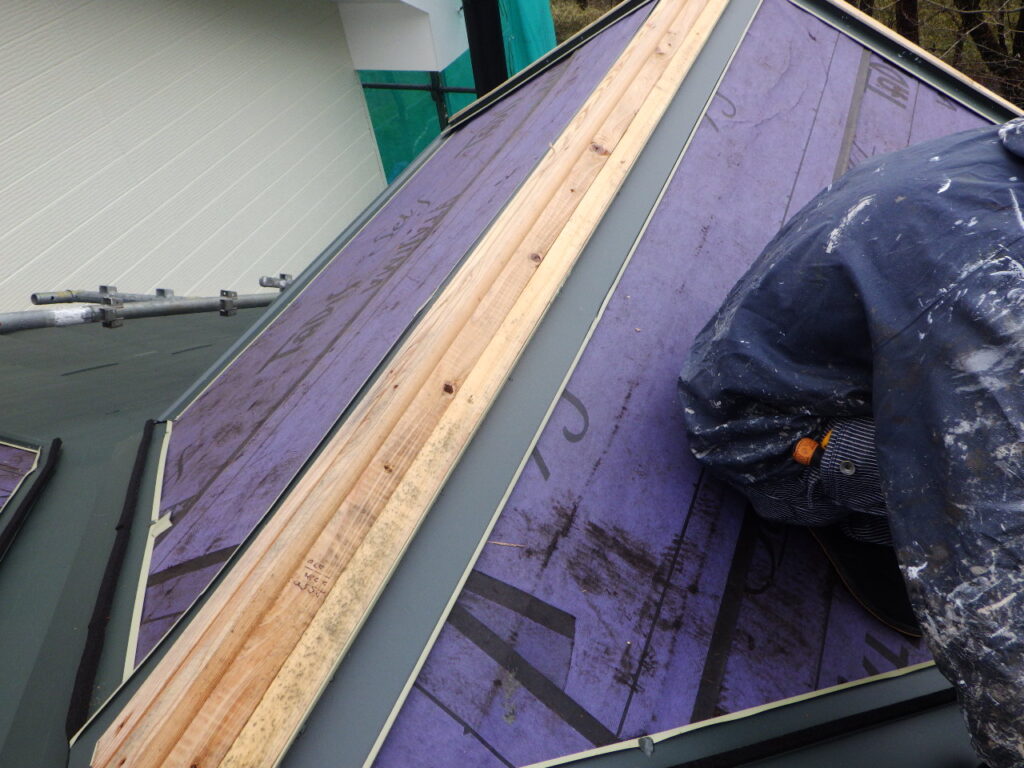 市原市千種にお住まいのお客様より、強風で剥がれた棟板金のお見積きました。瓦屋根以外の屋根の棟に使用されている部材は、金属板で「棟板金」といいます。そして、棟板金は強風の影響を受けやすく、飛び込み業者さんからの指摘が多い部分でもあります。 大棟(おおむね)の棟板金がケラバ近くを残して剥がれ落ちていました。幸い、お ...続きを読む2023/10/18 那須町の屋根重ね葺き工事で横暖ルーフを貼り付けました。