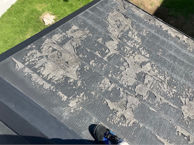 今回は長久手市にて、15年ノーメンテナンスだったスレート屋根の点検を実施した事例を紹介していきます。今後のことを考え屋根メンテナンスを決意し、まずは屋根の診断を実施しました。結果として点検後、棟板金の釘浮きと雨漏りの状況が発覚。このように屋根点検は不具合を早期に発見して、住宅が痛む前にメンテナンスを施すことが ...続きを読む2023/10/16 天白区倉庫屋根にて経年劣化により塗膜剥離・メンテナンスの希望により屋根カバー工事提案