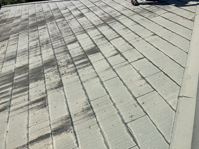 豊橋市芦原町にお住いのお客様から雨漏りのご相談を頂きました。木造2階建ての日本瓦葺きで1階の屋根から雨漏りするとの事。以前ある業者に雨漏り修理をやってもらったが改善することがなくお困りでした。以前の雨漏り修理の内容は「コーキング打ち」をされたそうです。 ...続きを読む2023/10/14 豊島区高松にて金属屋根の無料点検を行ったところ表面塗装には劣化の症状が見られました