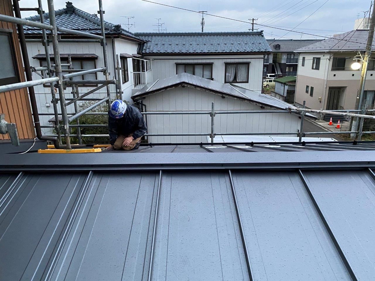 豊橋市富士見台にてカラーベスト屋根を調査しました。木造2階建てで築45年ほど経過しており、屋根、外壁の塗装は2度ほど記憶があるそうで、現状は表面劣化がすすみ気掛かりであったことと、2階の一部の部屋で雨漏りがあることに困っておられました。塗装に関しては過去ご主人がDIYで塗られたとのこと。現在は他界をされ、どこ ...続きを読む2023/10/7 門真市 板金屋根からの雨漏り 新しく立平板金で葺き替えました。