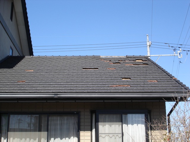 岐阜市でおこなったスレート屋根の調査をご紹介します。「築22年程の屋根のメンテナンスをご検討しているので点検してほしい」と、お問い合わせをいただき調査に伺いました。 屋根材のスレートは色褪せており塗膜が剥がれている状態でした。屋根材のスレートは塗膜で保護されており防水性や耐久性を保持しておりま ...続きを読む2023/10/6 豊橋市神野新田町にて突風による瓦飛散の被害を調査、防災機能が無かった時代の瓦でした