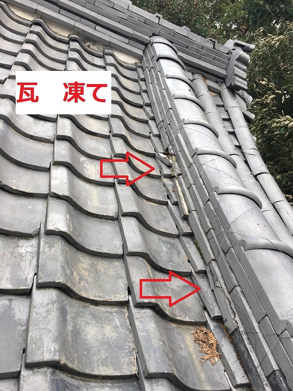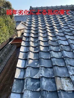 豊橋市神野新田町にて突風被害に遭われたお客様を調査。築30年木造2階建て平板瓦葺きのお住まいで、外部のメンテナンス履歴は外壁塗装を2度行っていました。瓦屋根に関しては問題無かった為、特に行って来なかったとの事。調査にお伺いすると平板瓦は発売初期のもので、当時はまだ防災瓦ではなく防災機能は備えていませんでした。 ...続きを読む2023/10/6 田原市赤羽根町にて瓦屋根の葺き替えをご検討中のお客様、経年劣化で瓦が凍てていました
