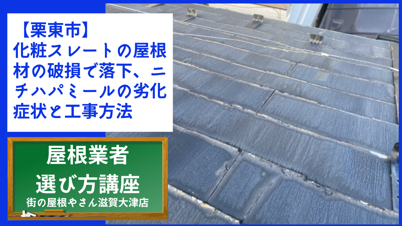 こんにちは!街の屋根やさん滋賀大津店です!今回は外壁の隙間を埋めているゴムが亀裂、剥がれがある為見てほしいとご連絡を頂きお伺いしました。 目次 【表示】 【非表示】 ...続きを読む2023/10/3 【栗東市】化粧スレートの屋根材の破損で落下、ニチハパミールの劣化症状と工事方法