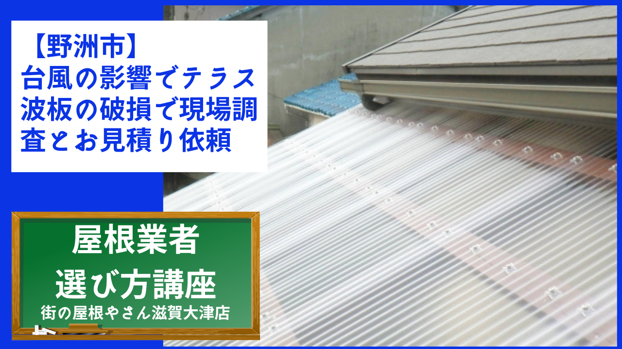こんにちは!街の屋根やさん滋賀大津店です!今回は築年数23年目の化粧スレートの屋根点検でお伺いいたしました。以前の台風の影響で屋根材が落下しているのに気づきネットからお問合せを頂きました。 目次 【表示】 【非表 ...続きを読む2023/10/3 【野洲市】台風の影響でテラス波板の破損で現場調査とお見積り依頼