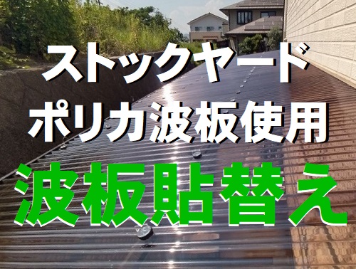 福山市にお住まいの皆さまこんにちは!街の屋根やさん福山店です。今回は福山市で行いました『ストックヤードの波板調査』の様子を紹介いたします。街の屋根やさん福山店では「波板」に関するご相談や工事のご依頼を多数いただいております。波板の全交換が必要な場合や留め具だけの交換で済む場合もあります。数多くの実績があります ...続きを読む2023/09/17 福山市でストックヤードの波板貼り替えにポリカーボネートを使用