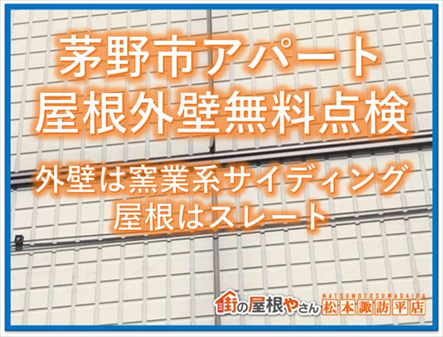 松本諏訪地域では12月に入り残念ながら屋根塗装、外壁塗装のシーズンオフに入りました。街の屋根やさん松本諏訪平店の営業エリアである松本地区、諏訪地区、上伊那地区で年間を通して塗装に最適なシーズンはいつ?お客様からよく聞くご質問です。暑さ寒さの気温の関係、梅雨時、台風シーズンの雨の関係、日照時間 ...続きを読む2023/09/17 茅野市アパート屋根外壁無料点検|外壁は窯業系サイディング屋根はスレート
