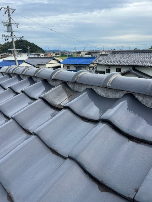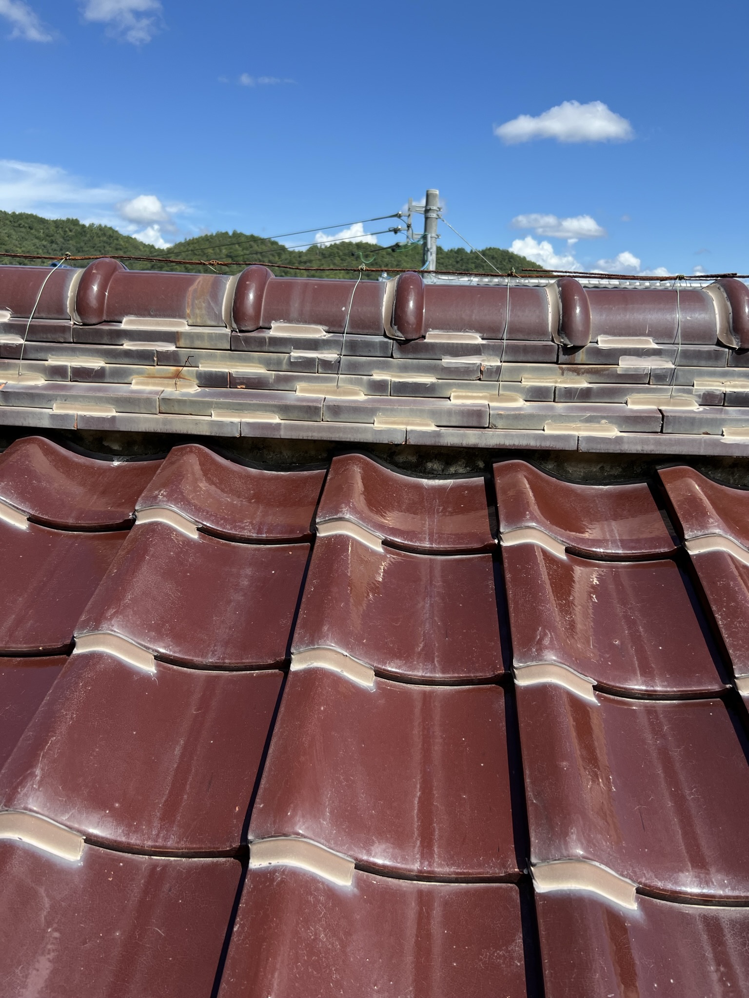大垣市のお客様から「屋根の雨漏りが心配になり一度見てほしい」とお問い合わせをいただきました。 今回点検したお宅は築40年経過している和瓦でした。 さっそくハシゴをかけて見ていきたいと思います。 一般的なお住いでは瓦屋根の瓦と瓦の ...続きを読む2023/09/15 大垣市にて築30年経過した瓦屋根を調査すると漆喰が剥がれ落ちて棟瓦が歪んでいました