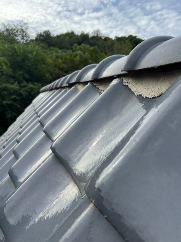 大垣市にお住いのお客様から「屋根のメンテナンスを長い間していないので一度屋根の点検をしてほしい」とご相談をいただきました。早速お伺いさせていただきました。 現地に着いて梯子に登って調査します。 現時点では屋根からの雨漏りもしていないとのことでした。本日調査を行うのは瓦屋根です。 ...続きを読む2023/09/14 大垣市にて瓦屋根の現場調査に行くと棟に詰められた漆喰が剥がれ落ちていました