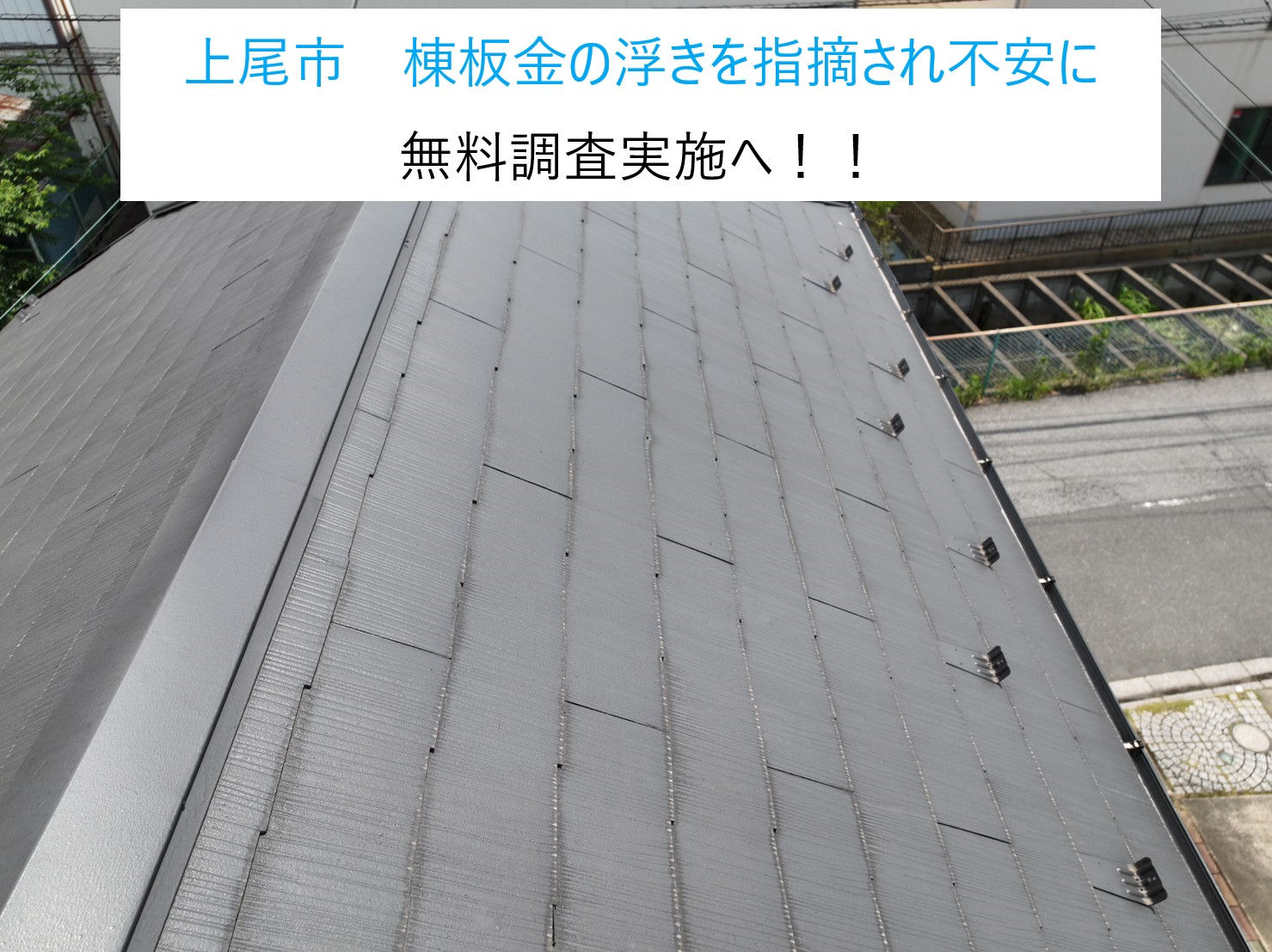 豊橋市花田町にお住いのお客様からのご相談です。築30年以上経過したセメント瓦(モニエル)葺きのお住まいで、2階の天井から雨漏りがするそうでお困りでした。普段の雨では雨漏りせず、風をともなった雨の時に雨漏りするそうです。また風向きによっても変わるそうで、いろいろな角度からの調査が必要なのではと説明させていただき ...続きを読む2023/09/14 上尾市で屋根の頂部棟板金の浮きを業者に指摘され不安に・・無料調査へうかがいました!!