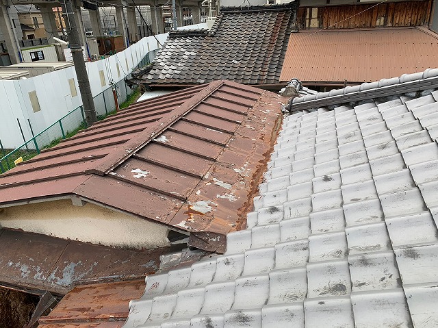 こんにちは、街の屋根やさん堺店です。今回は堺市東区で台風で物干し場屋根が破損しポリカ波板全面張替工事を行った様子をご紹介します。耐衝撃性や耐久性が高い既存のポリカ波板も、耐用年数が過ぎてしまうと割れや熱変形などが起ってしまいます。風が吹くとパタパタと音が鳴ったり、茶褐色に変色がある波板があれば、業者に点検を依 ...続きを読む2023/09/12 名古屋市南区で屋根の漆喰剥がれや棟瓦歪み、ビス緩みなど現場調査について