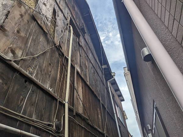 今年の台風は京都の全域で風災害をもたらしているようです、今回は山科区で雨樋が風で飛ばされてしまったというお客様の依頼で現地無料調査にお伺いさせて頂きました。建物は木造3階建てのお家です。破損箇所はすぐに分かりま ...続きを読む2023/09/4 右京区 50年前に増築した建物と既存建物の結合部からの雨漏り被害調査