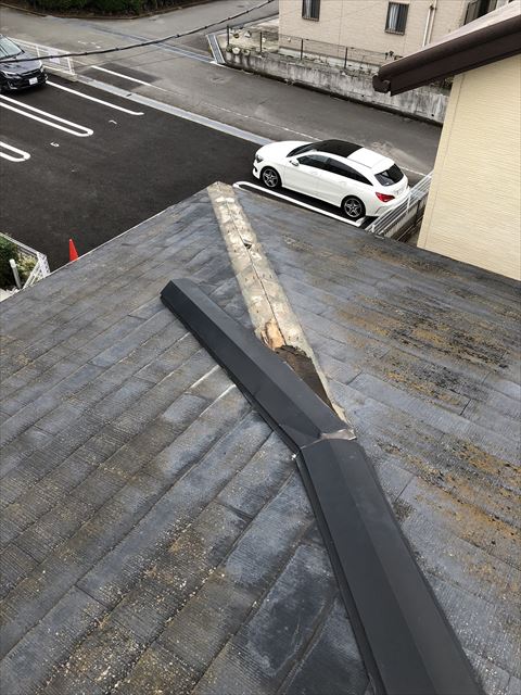 所沢市のお住まいから、頻繁に発生するゲリラ豪雨で雨樋からバチャバチャ雨水が溢れ落ちてきているのに気付き、設置状況に問題があるのではとお問い合わせがありました。雨樋も経年劣化で変形してしまいます、今回は雨樋交換工事の依頼がありました! ...続きを読む2025/10/23 阪南市で台風被害にあった工場の小波スレートの屋根の棟を修理