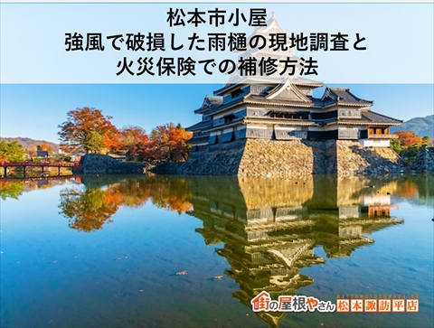 2025年10月21日 更新 「夜の強風で外壁が外れてしまって…」という一本の電話から、今回の現場が始まりました。場所は松本市寿の製菓工場さま。2階と3階の外壁パネルが計6枚飛散し、幸い人的被害はありませんでしたが、隣地の畑へ飛来するほどの風 ...続きを読む2025/10/21 松本市小屋|強風で破損した雨樋の現地調査と火災保険での補修方法