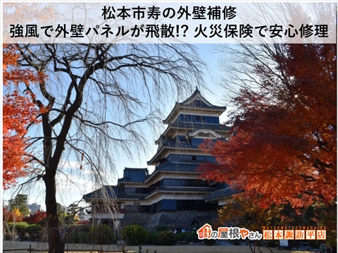 皆さんお疲れ様です。街の屋根やさんつくば稲敷店です。 前回のブログでは、龍ヶ崎市の住宅にて実施している屋根カバー工事の雪止め金具の取り付けと「スーパーガルテクト」本体仕上げの様子をお伝えいたしました。 今回は、谷部の「スーパーガルテクト」へ見切り材を取り付けて納めていく工程について、その施工の様子をご紹介した ...続きを読む2025/10/21 松本市寿の外壁補修|強風で外壁パネルが飛散!? 火災保険で安心修理