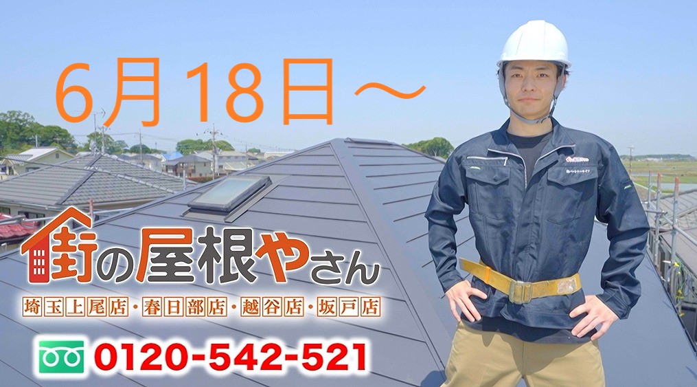 岐南町でおこなった瓦屋根の調査の要津をご紹介致します。『屋根に漆喰が落ちているので屋根の点検をしてほしい」と、お問い合わせをいただきました。漆喰は瓦屋根の棟部分に主に使用されており、瓦と瓦を固定する接着剤のような役割を果たしております。瓦の形状は波状になっており、棟ののし瓦との間には隙間が出来 ...続きを読む2023/06/19 お家の外壁塗装♪テレビ埼玉で「街の屋根やさん」のCMが始まりました♪