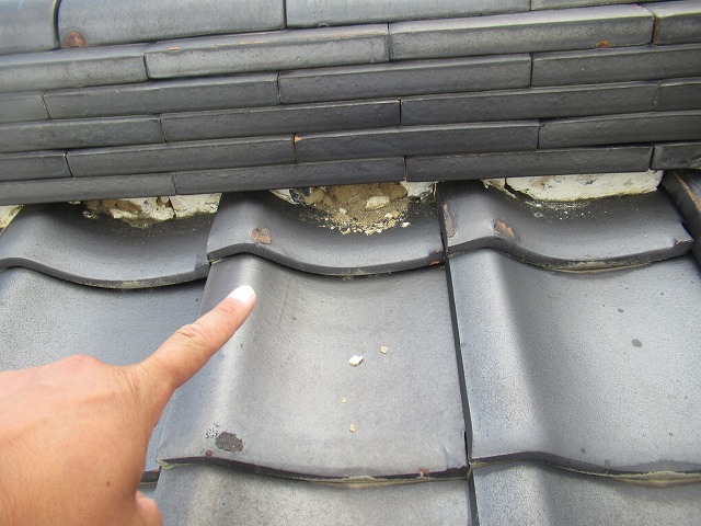 あま市にて庭先に落ちていた白い塊が気になり、見上げたところ漆喰の剥がれが判明したことによるお問合せで屋根点検を行いました。漆喰は屋根を接着し固定する役割を担う大切な部位ですが、経年劣化により剥がれることで屋根の固定力が落ちてしまいます。このまま放置すると固定力が落ちた瓦が地震や台風といった自然環境によりズレて ...続きを読む2023/06/16 天白区瓦屋根の戸建住宅にて棟積みなおし工事・棟の経年劣化による雨漏り発生