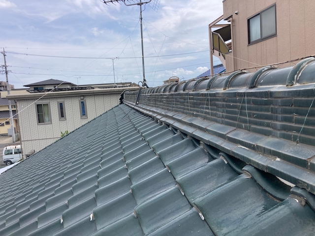 今回は天白区の瓦屋根が使用された戸建住宅にて雨漏りが発生したため、棟を積みなおし工事した事例を紹介していきます。のし瓦が積んである棟を解体し7寸丸の1枚の瓦に仕上げたため、雨漏り対策を徹底した施工工事となりました。 棟積み直し工事の様子 ...続きを読む2023/06/16 千種区スレート屋根の無料点検・築30年になりメンテナンスを検討している事例