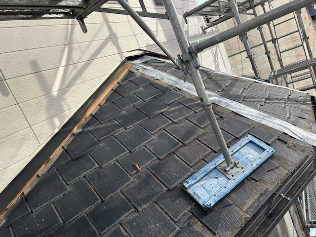 今回は天白区の瓦屋根が使用された戸建住宅にて雨漏りが発生したため、棟を積みなおし工事した事例を紹介していきます。のし瓦が積んである棟を解体し7寸丸の1枚の瓦に仕上げたため、雨漏り対策を徹底した施工工事となりました。 棟積み直し工事の様子 ...続きを読む2023/06/16 千種区スレート屋根の無料点検・築30年になりメンテナンスを検討している事例