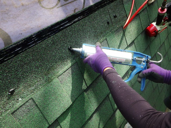 那須町でシングルセメントを使いカバー工事をしました。 南面のルーフ貼り付け前の状態です。 アスファルトシングル(オークリッジスーパー)を貼り付けていきます。 シングルセメントを塗布しました。 軒先に取り付けた唐草に、シングルセメントを塗布して ...続きを読む2023/06/10 那須町の屋根カバー工事で天窓周りの防水処理をしました。