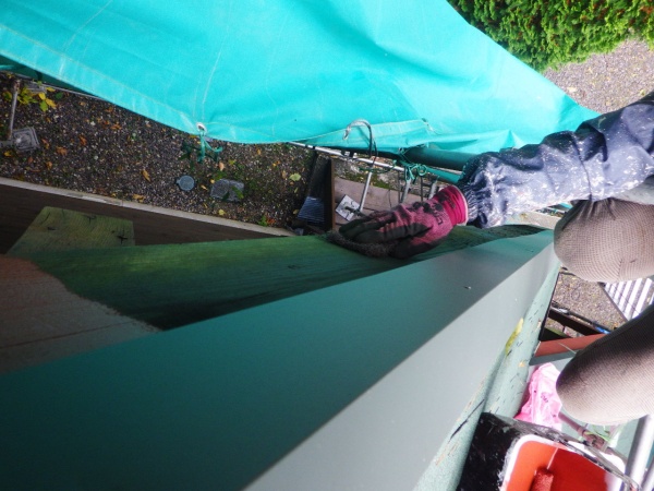 那須町の屋根重ね葺き工事でシーリングで防水処理をしました。 釘頭のシーリング中です。 雨水侵入防止と釘抜け防止のために釘頭にシーリング材を塗布していきます。 釘頭のシーリング処理が終了しました ...続きを読む2023/06/10 那須町で10寸勾配ログハウスの破風板塗装をしました。