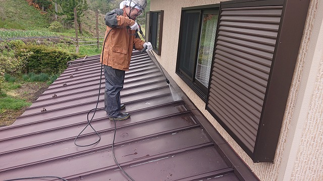 宇治市で6月2日の台風2号と梅雨前線の影響で大雨が降りました、京都、大阪などで大変多くの雨漏れ調査依頼をいただきました。今回は会社事務所の雨漏り調査の模様をお届けします。20年近く事務所をされているという事で雨漏りの豪雨の時が初めてとの事でした。雨水が侵入していた場所をマスキングテープで印をし ...続きを読む2023/06/10 長野県木曽郡木曽町にてトタン屋根の塗装工事を行います。洗浄作業