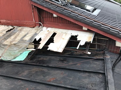 三重県亀山市のお客様宅の台風被害による屋根の棟板金と雨樋の修繕を行いました。強風により棟板金が敷地内に落ちていましたが、第二災害がおきなくて良かったです。 台風被害により、屋根の棟板金が剥がれました。 ...続きを読む2023/06/2 三重県津市白山町にて和瓦でラバー工法がしてある現場調査